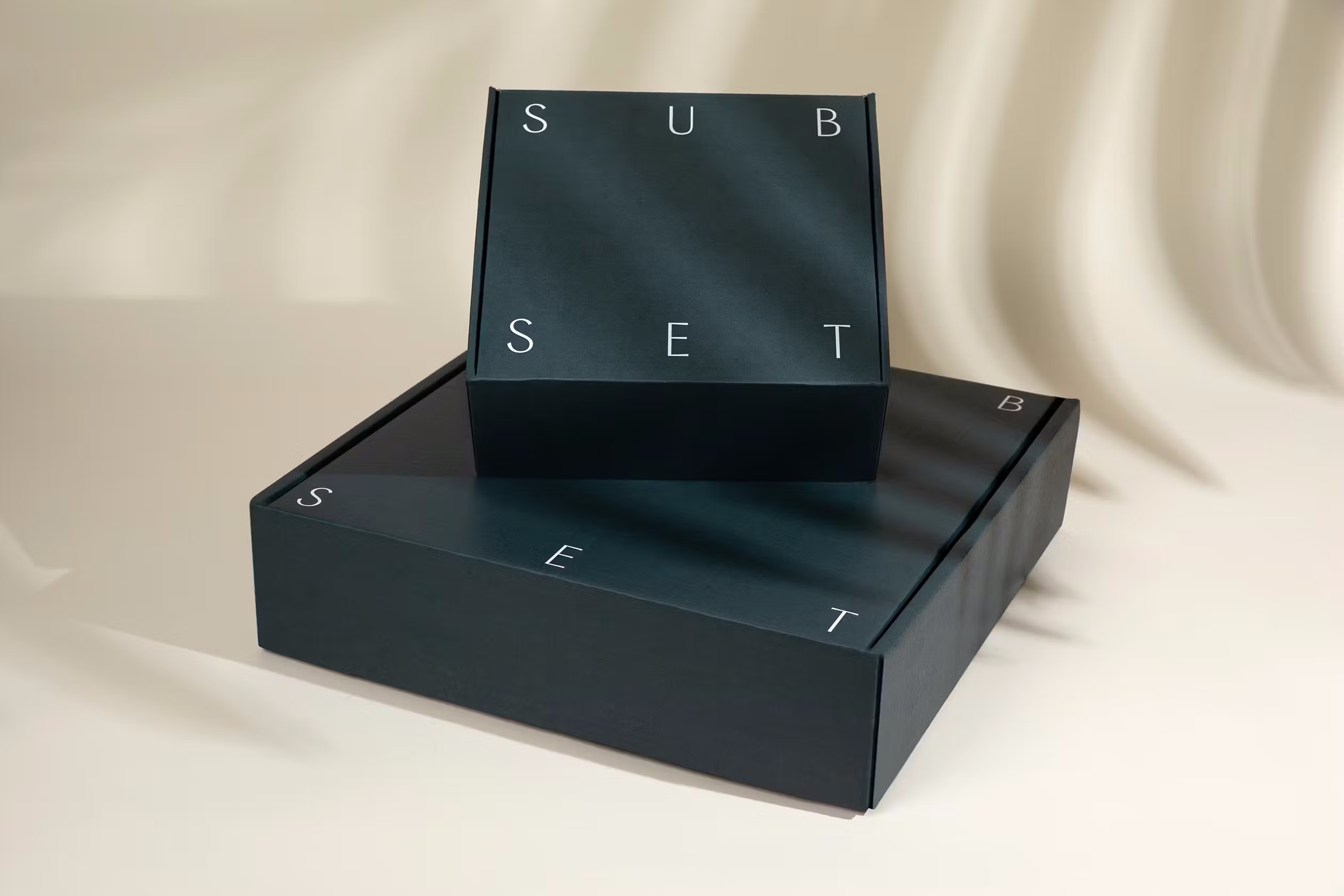 Subset offers a wide selection of sustainable, organic cotton intimates and wearables for everyday living. Originally called Knickey, I worked with Outline on creating a brand system for their new moniker. The custom logotype adapts to any bounding shape — a nod to the comfort and flexibility within each product. The series of interchangeable marks was inspired by the concept of parentheses: a pair that emphasizes the space between, just like underwear lives between the skin and outer garments.
